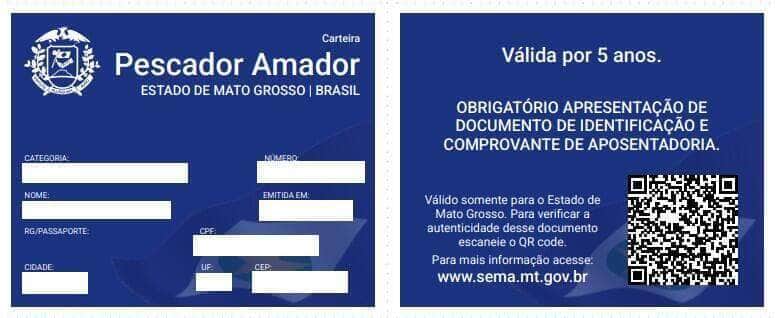 Além do documento emitido no site da Sema, a carteira de pesca amadora federal é válida também dentro do Estado de Mato Grosso.