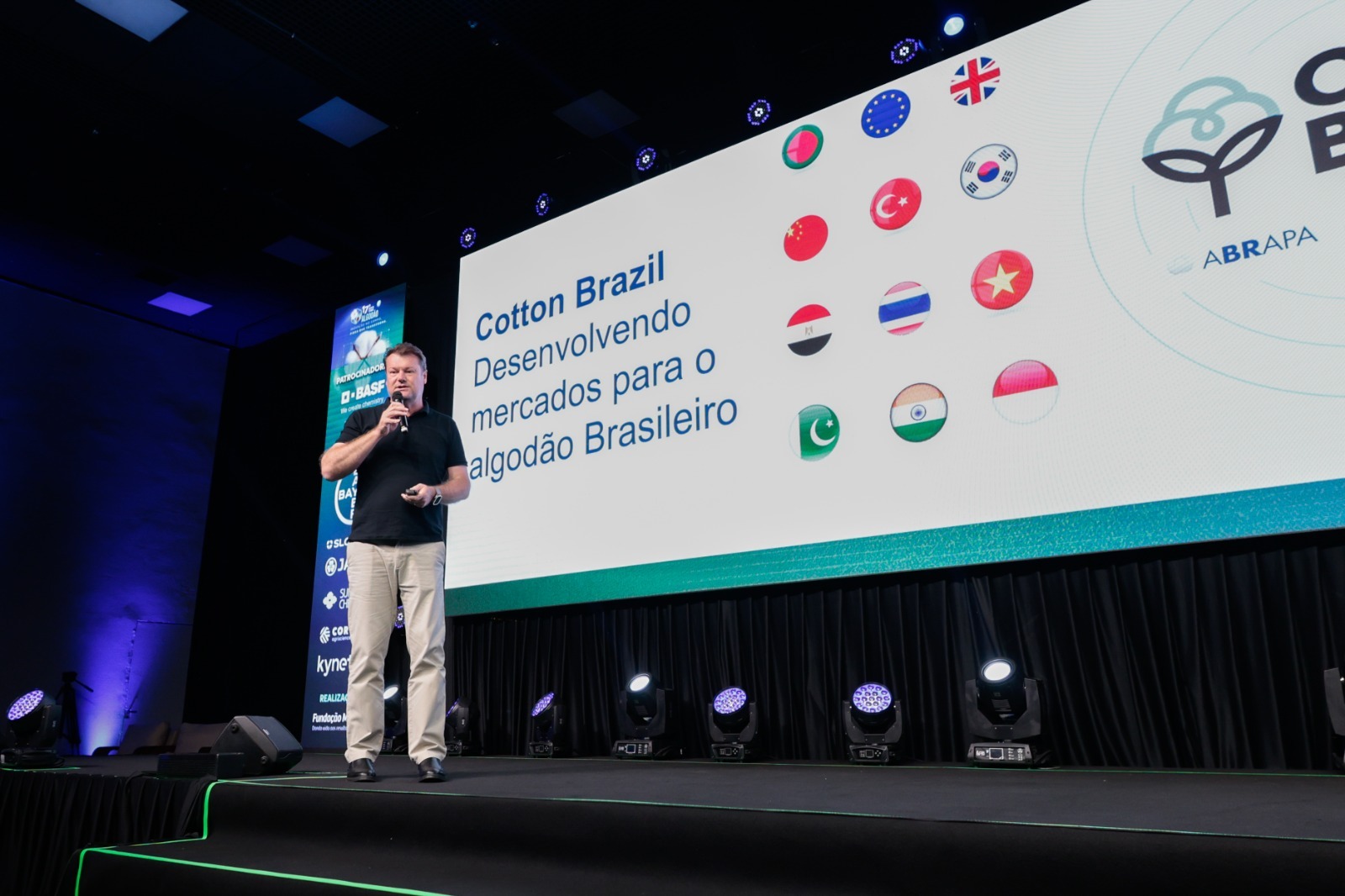 Produtores rurais, pesquisadores e especialistas dividiram espaços nas apresentações para falar sobre o presente e o futuro da produção de algodão. O engenheiro agrônomo e produtor rural de Campo Verde (MT), Alexandre Schenkel, participou de dois painéis. Na abertura, ressaltou a importância do conhecimento técnico aliado à dinâmica do mercado global de pluma. Em outro momento, destacou o impacto da qualidade da fibra na produção e na comercialização do algodão brasileiro.
