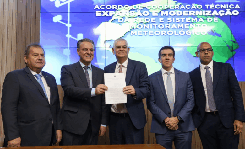 Nesta quarta-feira (3), o ministro da Agricultura e Pecuária, Carlos Fávaro, o presidente da Eletrobras, Ivan Monteiro, e o diretor do Inmet, Carlos Jurgielewicz, assinaram dois Acordos de Cooperação Técnica entre o Instituto Nacional de Meteorologia (Inmet) e a Eletrobras para a expansão e modernização da rede e do sistema de monitoramento meteorológico em diversos estados.