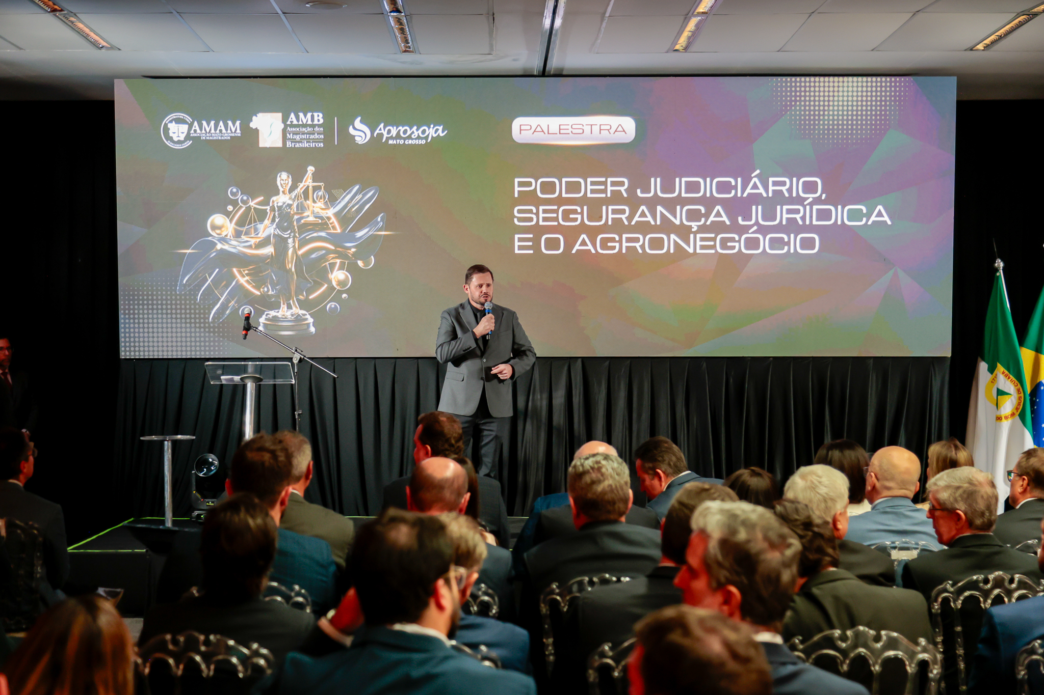 A Associação dos Produtores de Soja e Milho de Mato Grosso (Aprosoja MT) promoveu, nesta segunda-feira (18.08), um encontro com autoridades, produtores e representantes do setor para debater o tema “Poder Judiciário, segurança jurídica e o agronegócio”. O objetivo foi aproximar diferentes setores e discutir os desafios e avanços necessários para garantir maior estabilidade e previsibilidade ao produtor rural.