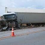 O impacto lançou destroços na direção oposta, resultando em uma colisão adicional. Uma terceira carreta, uma Mercedes Benz de cor branca e placas de Francisco Beltrão (PR), que seguia no sentido contrário, foi atingida na lateral pelo último vagão da carreta que fez o “L”, completando assim a sequência de impactos.