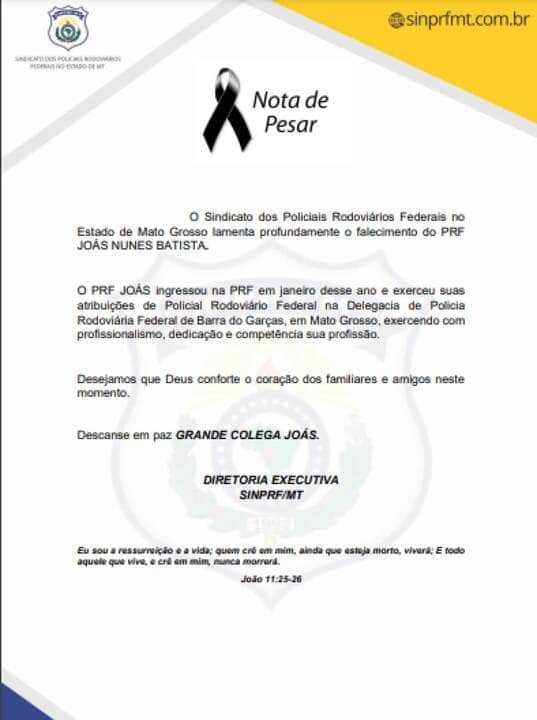 NOTA DE PESAR – PRF JOÁS – SINPRFMT