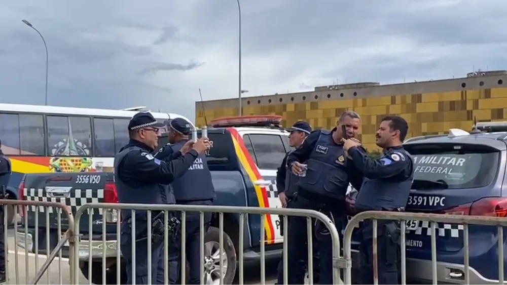 Enquanto os bolsonaristas invadiam a Praça dos Três Poderes, policiais militares do DF foram vistos tirando fotos dos atos antidemocráticos.