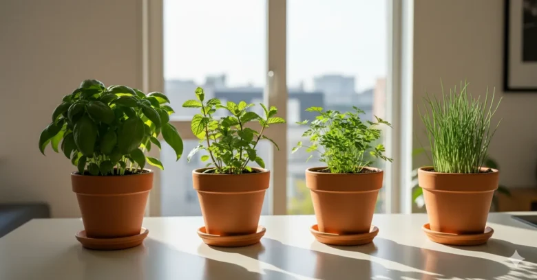 Plantas menores e adaptáveis são ideais para hortas de apartamento, garantindo crescimento saudável sem ocupar muito espaço.