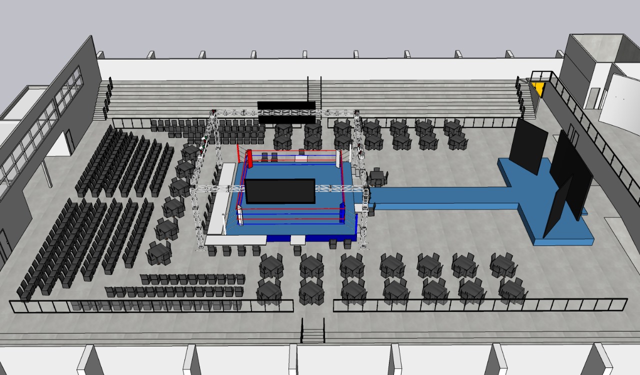 Além do ringue profissional e iluminação especial, o projeto conta ainda com ambiente climatizado, decoração, Painel de LED P2, com alta definição, capacidade ampliada: mais de 1.000 lugares no total, somando arquibancadas e área exclusiva de cadeiras para convidados e patrocinadores. O local também dispõe de quatro banheiros, todos recentemente reformados.