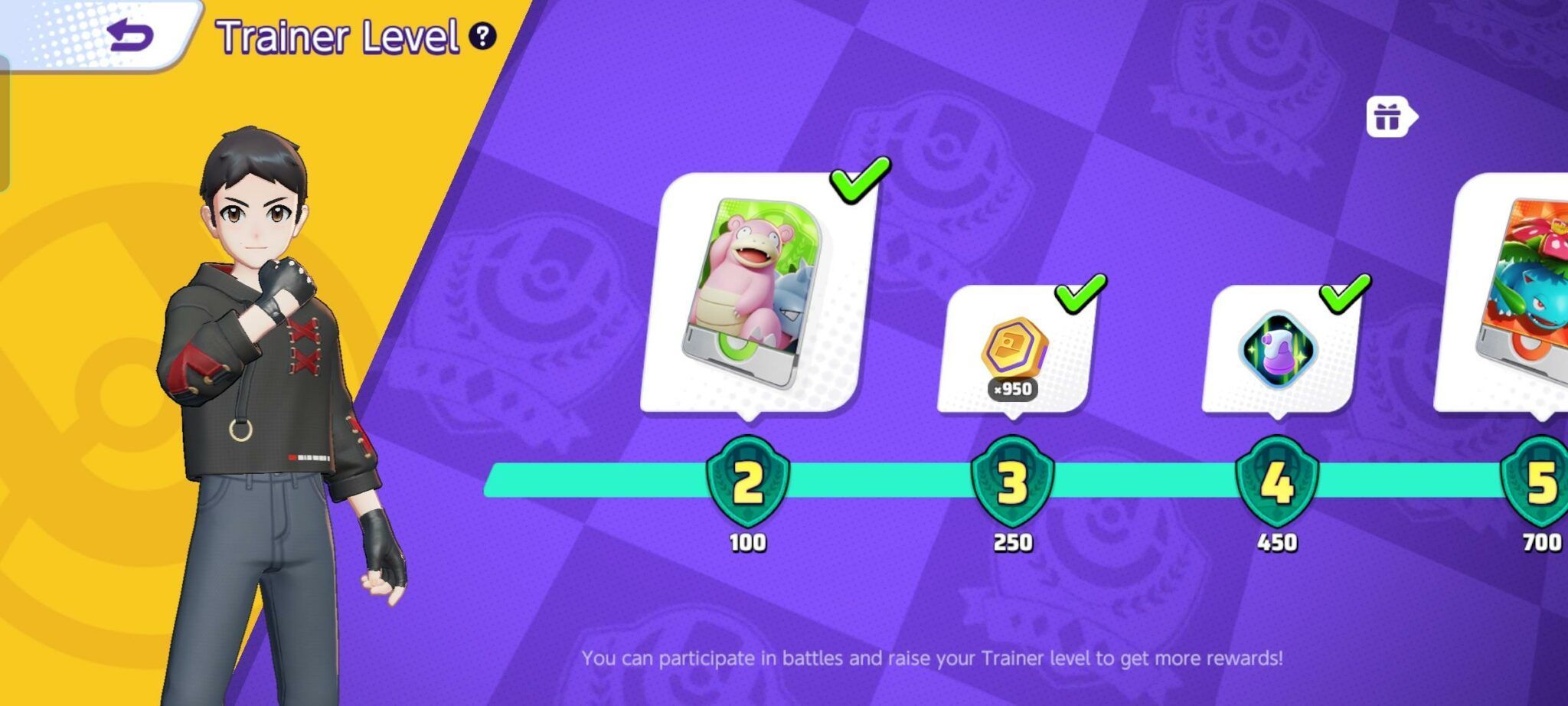 Para obter o Slowbro, tudo o que você precisa fazer é alcançar o nível dois do treinador, o que você pode fazer facilmente jogando uma ou duas partidas. Quando você atinge o nível dois, pode reivindicar o Slowbro através do menu de nível superior do treinador no canto superior esquerdo da tela inicial.