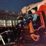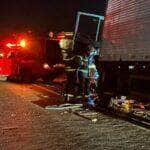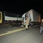 Uma mulher identificada pelo nome de Leonilda Gusmão, morreu prensada em um acidente envolvendo dois caminhões.