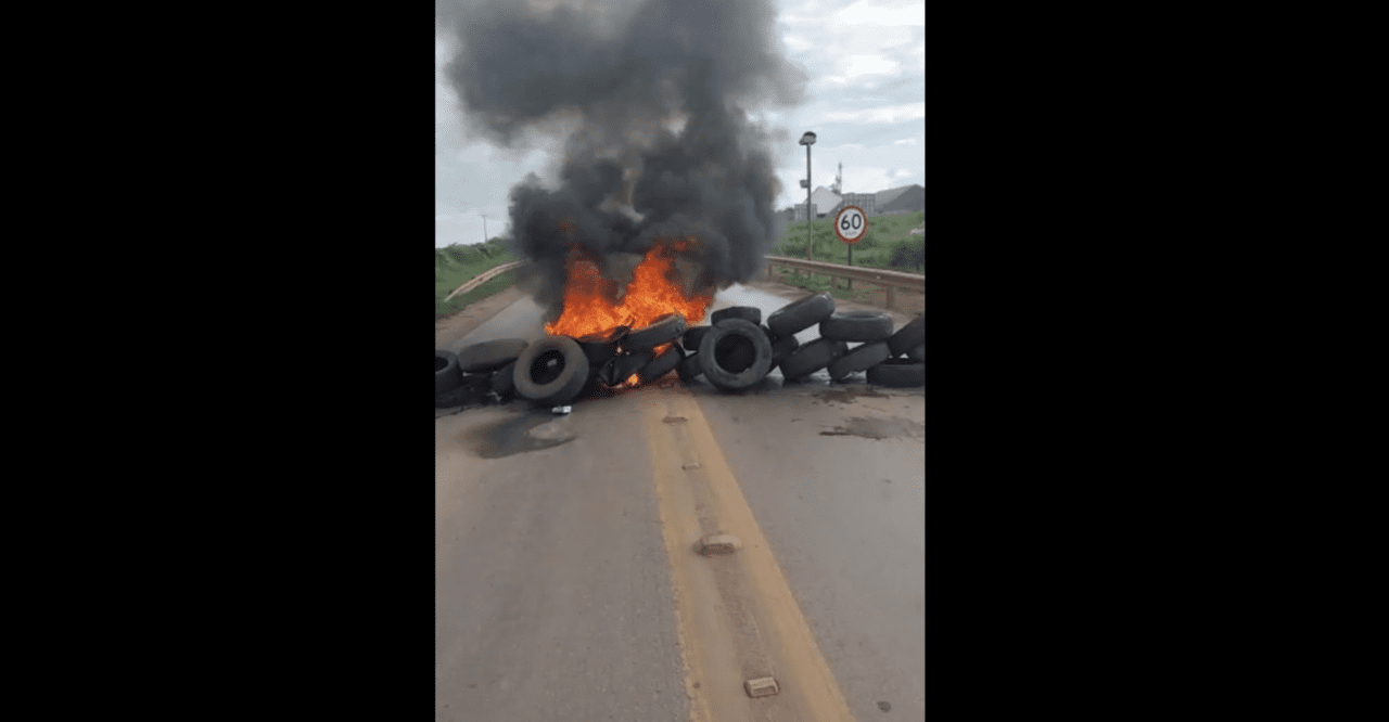 Imagens enviadas em grupos de Whatsapp mostram que os manifestantes bloquearam alguns pontos da rodovia BR-163 no nortão do estado.