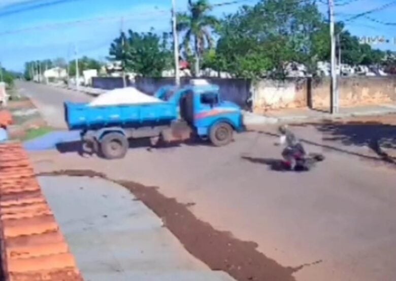 Uma câmera de segurança registrou o exato momento em que David Wilkerson Gonçalves de Menezes, de 23 anos, caiu da motocicleta e foi atropelado por um caminhão que realizava um cruzamento na tarde dessa terça-feira (14), no bairro Jardim Nova Sul, em Barra do Garças (509 km a leste de Cuiabá). O jovem não resistiu aos ferimentos e morreu na hora.