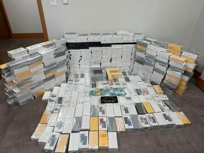 Uma operação envolvendo forças de segurança do Estado resultou na apreensão de cerca de 500 aparelhos celulares sem documentação fiscal e na prisão de dois homens em Cuiabá neste domingo (16).