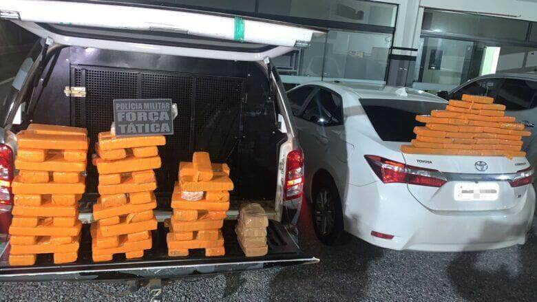 Antes mesmo de ser questionado, o suspeito confessou a presença de drogas no veículo e que os entorpecentes estavam escondidos no porta-malas do Corolla. Em vistoria veicular, o material foi encontrado dentro de caixas de papelão, no local indicado pelos criminosos.