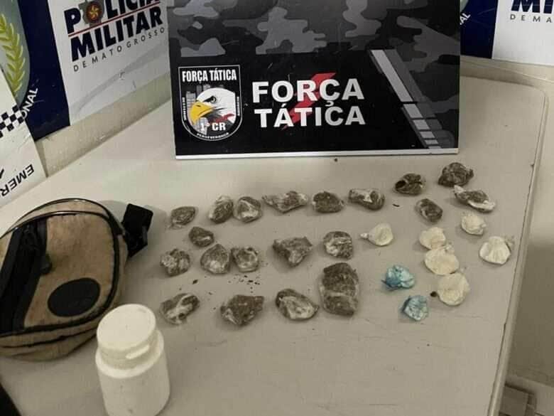 Equipes da Força Tática do 1º Comando Regional prenderam um homem, de 22 anos, pelos crimes de furto e tráfico ilícito de drogas, na noite desta segunda-feira (10.12), em Cuiabá. Com o suspeito, foram apreendidas 28 porções de substâncias análogas à maconha e cocaína.
