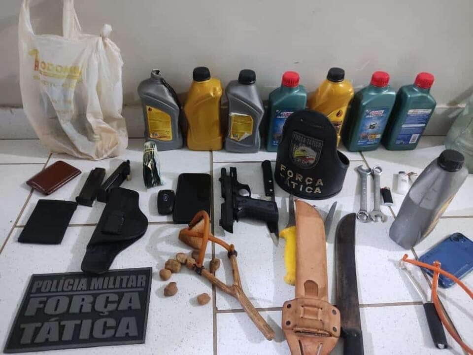 As prisões foram efetuadas pela Força Tática da Polícia Militar, após informações e imagens de vídeos. Na ação, os policiais apreenderam um revólver calibre 38 com 36 munições, facas, facões, combustível, celulares, isqueiro, entre outros produtos. Também havia R$ 9,9 mil em dinheiro com um dos detidos.