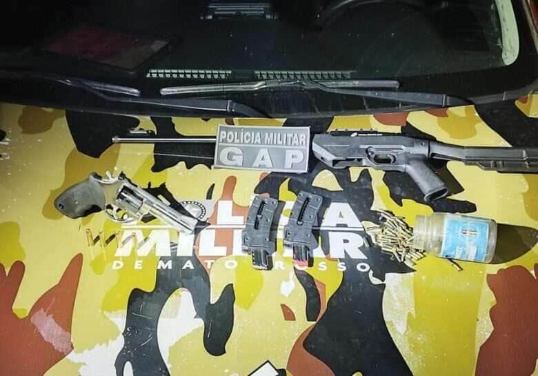 Na noite desta segunda-feira (07), policiais militares da Patrulha Rural do 11º Batalhão de Cláudia apreenderam um revólver calibre 38, um rifle calibre 22, 120 munições e uma case durante abordagem na MT-423, no município de Cláudia. Um homem de 23 anos foi preso em flagrante por porte ilegal de arma de fogo.