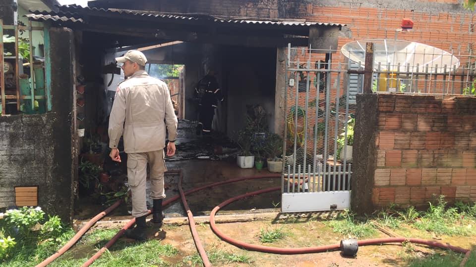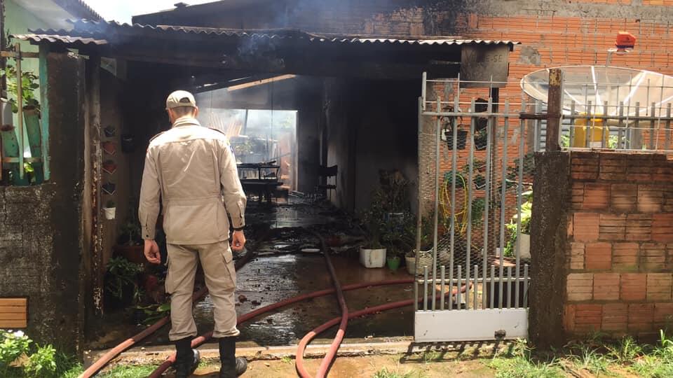 Um incêndio destruiu parte de uma residência, localizada na rua Caçapava do Sul, no bairro Ventura, no final da manhã desta sexta-feira (10) em Lucas do Rio Verde-MT.