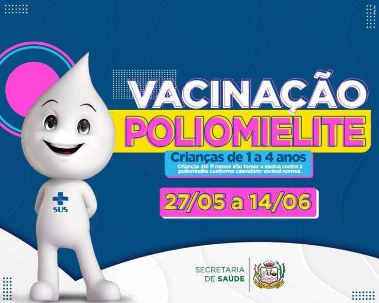 A Secretaria Municipal de Saúde inicia nesta segunda-feira (27), a campanha de vacinação contra poliomielite, para crianças de 0 a 4 anos 11 meses e 29 dias, que devem comparecer nas Unidades Básicas de Saúde (UBS), para tomar as duas gotinhas da vacina.