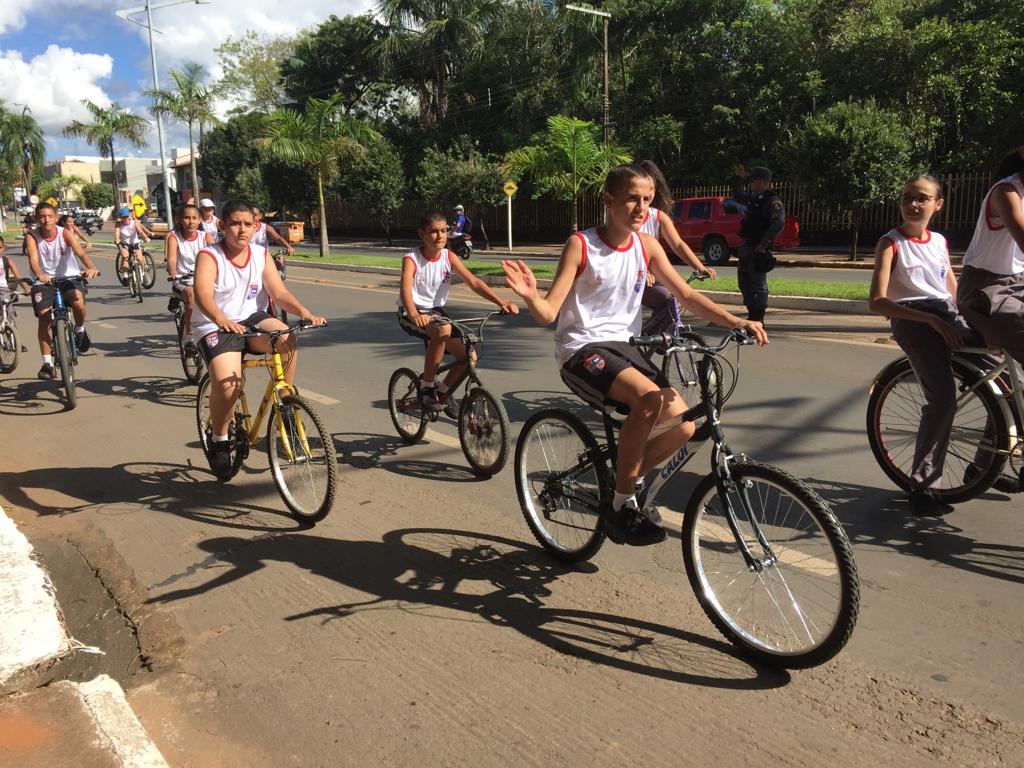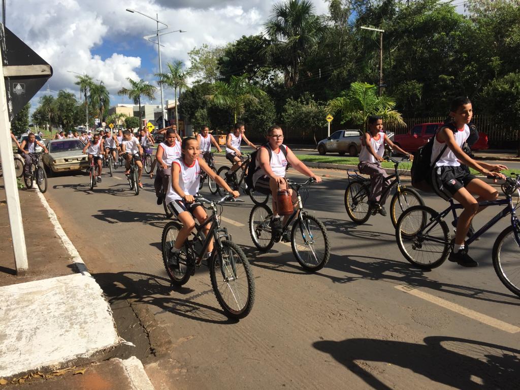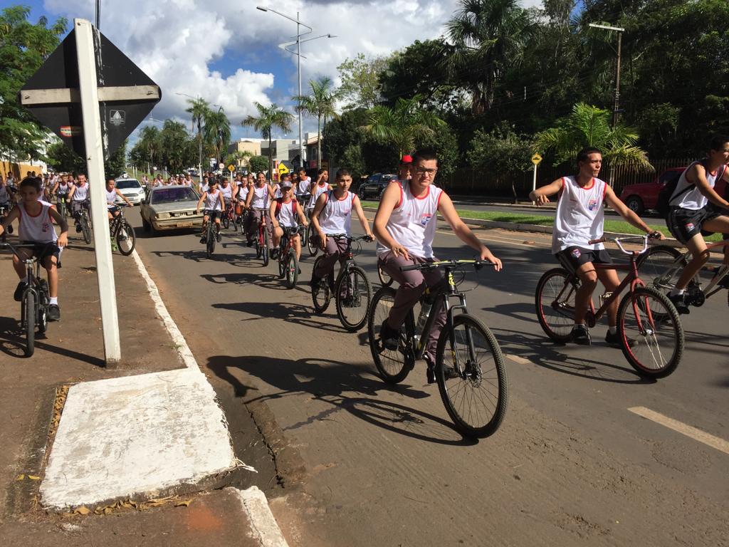 Na oportunidade, os diretores da unidade escolar promoveram um passeio ciclístico com os alunos. A pedalada ecológica saiu da sede da escola, no bairro Rio Verde, e seguiu pela Avenida Tocantins, passando pela rua Pará, descendo pela Avenida Mato Grosso até a entrada do lago.
