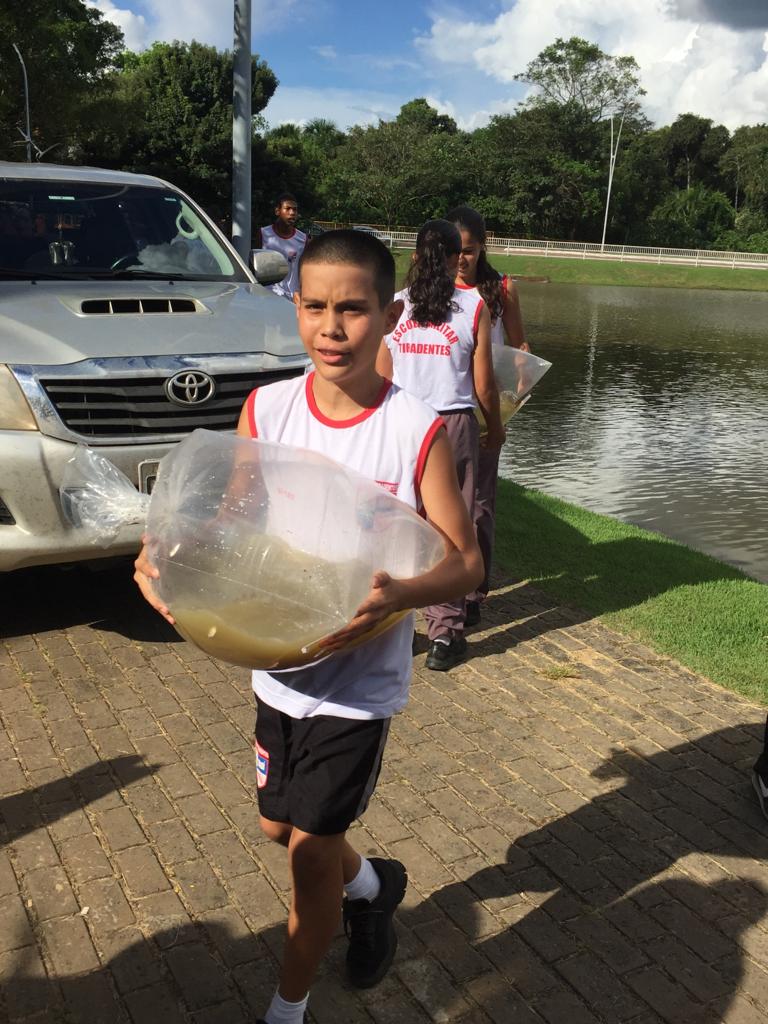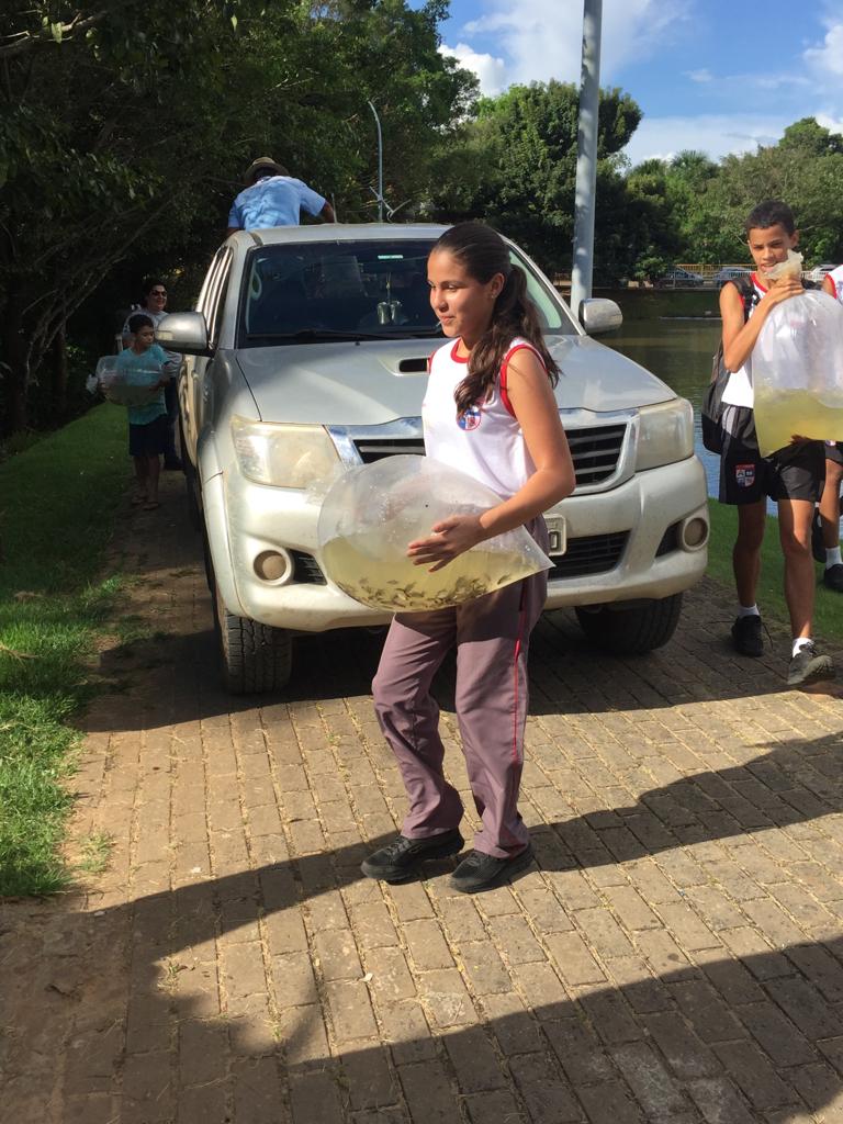A soltura dos peixes no lago teve como parceira a Empaer (Empresa Mato-grossense de Pesquisa, Assistência e Extensão Rural). Mais cedo, os alunos participaram de palestra sobre o uso racional da água e a importância de não poluir nascentes e rios.