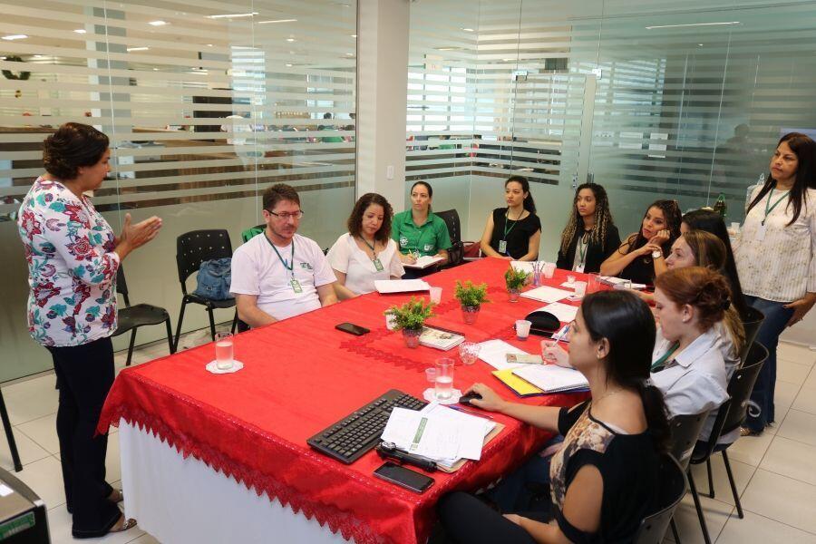 A gerente do Cadastro Único do Bolsa Família, Rúbia Cristina e a analista de desenvolvimento Econômico Social, Eva Anete Nogueira Domingos, ambas servidoras do Estado, estiveram reunidas com as equipes da Assistência Social, Saúde e Educação de Lucas do Rio Verde, para apresentar os dados dos programas sociais do Governo Federal, implantados na cidade.
