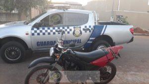 A motocicleta estava em poder de um rapaz, de 18 anos, que foi abordado durante rondas ostensivas da Guarda Municipal, no bairro Jardim Primaveras II.