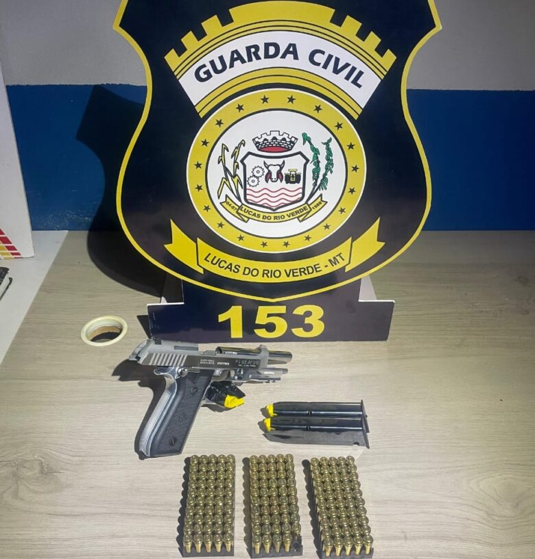 A Guarda Civil Municipal (GCM) de Lucas do Rio Verde (MT), foi acionada via 153, no início da madrugada desta quinta-feira (28), para atender a uma ocorrência de ameaça com uso de arma de fogo, no bairro Alvorada. A equipe, composta pelos GCMs Leonardo, Zanetti e Nunes, deslocou-se imediatamente até o local indicado, onde encontrou o suspeito em visível estado de embriaguez.
