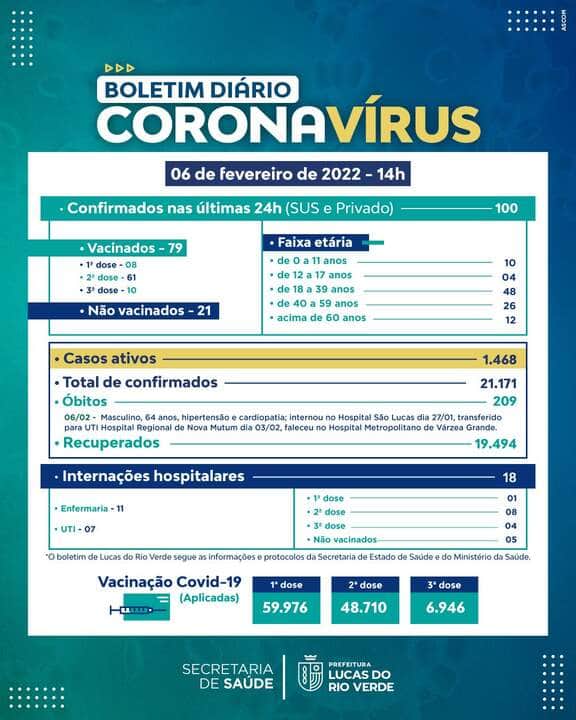 Desde o início da pandemia, Lucas do Rio Verde registrou 209 óbitos em decorrência da Covid-19.