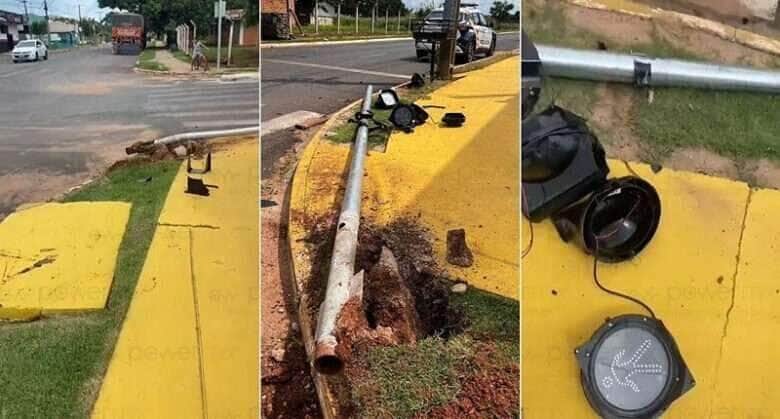 De acordo com testemunhas, o veículo trafegava pela Rua dos Mamoeiros quando, ao fazer a conversão na Rua Flor de Lótus, na contramão, a carroceria colidiu com o semáforo, arrancando o equipamento do solo. Após o incidente, o motorista seguiu viagem sem prestar esclarecimentos.