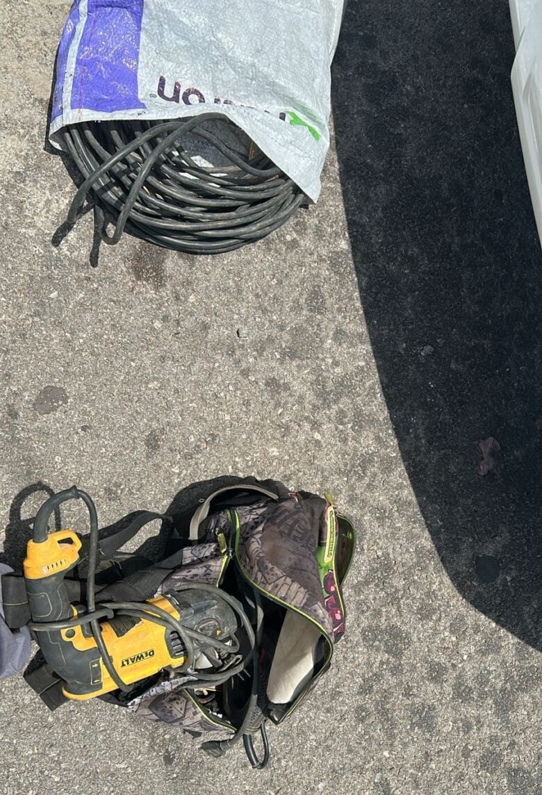 No local indicado, os policiais encontraram uma residência sem muros e com a porta aberta. Do lado de fora, foi possível visualizar uma mochila com cabos de ferramentas aparentes. No interior da casa, estavam outros dois homens, identificados como Vitor e Cristian, que afirmaram que Antônio havia deixado os objetos pela manhã, solicitando que fossem guardados até seu retorno.