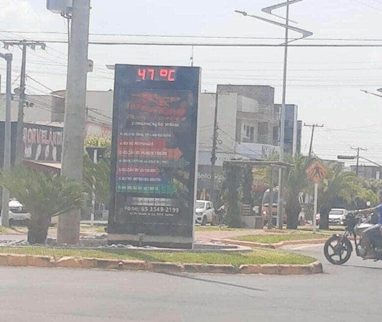 O registro feito pelo servidor público Sérgio Nery mostra o termômetro registrando 47 graus. A foto que mostra a temperatura fora do comum foi feita por volta de 13h30 desta sexta-feira. “Uma temperatura que assusta”, postou ele em suas redes sociais.