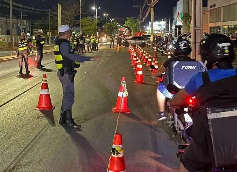 As abordagens iniciaram às 21h. Ao todo, foram confeccionados 93 autos de infração de trânsito, sendo três por recusa ao teste de alcoolemia, 30 por condução de veículo sem registro ou não licenciado, 26 por conduzir sem habilitação, três por conduzir sob efeito de álcool e 31 por infrações diversas.
