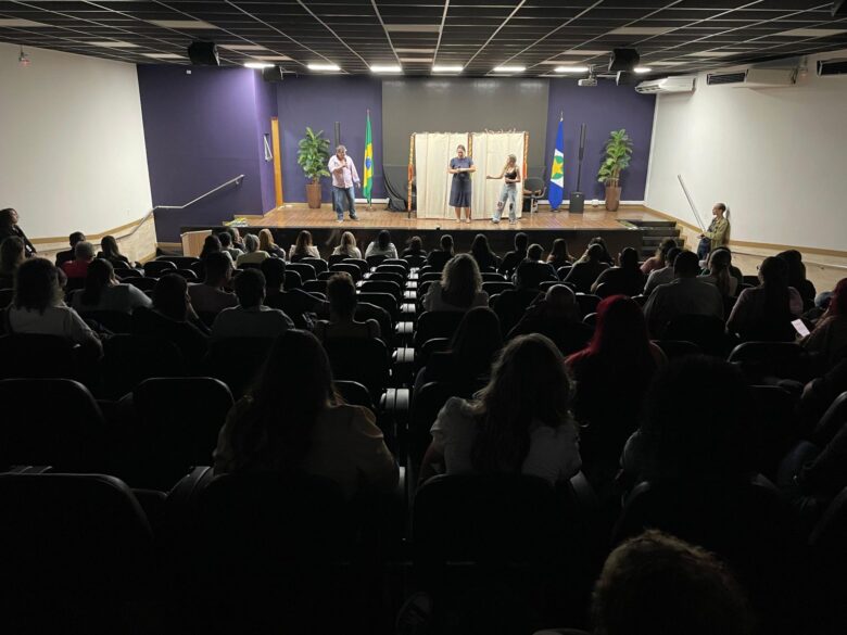O Ministério Público de Mato Grosso (MPMT) realizou, nesta segunda-feira (22), uma apresentação especial da peça teatral Re-Cortes aos servidores da Secretaria de Estado de Educação (Seduc), como parte da estratégia do projeto “A Prevenção Começa na Escola”. Encenado pela Companhia Vostraz de Teatro, o espetáculo aborda com sensibilidade e profundidade as múltiplas formas de violência doméstica, familiar e de gênero, e seus impactos na vida de mulheres e crianças.