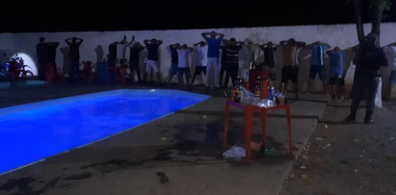 Na vistoria no local, os policiais encontraram porções de cocaína e pasta base de cocaína no chão, além de muitas garrafas de bebidas. Uma mulher se apresentou como a organizadora do evento. Ela alegou que estava comemorando seu aniversario.