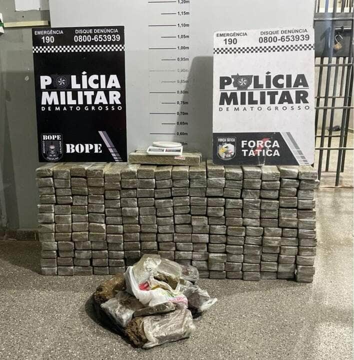 Força Tática do 1º Comando Regional apreendeu 150 quilos de maconha – Crédito: PMMT