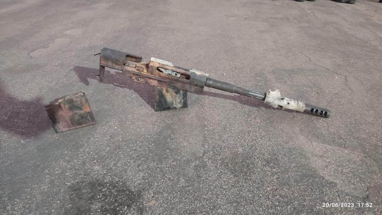 Um armamento de grosso calibre, sendo um fuzil anti-aéreo calibre .50 também danificado pelo fogo, era transportado no avião.