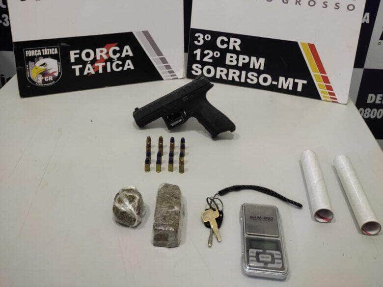 Policiais militares do 12º Batalhão prenderam em flagrante uma mulher de 44 anos por tráfico de drogas e porte ilegal de arma de fogo, na tarde desta quinta-feira (27.07), em Sorriso. Com a suspeita, a PM apreendeu porções de maconha e uma pistola, que teria sido utilizada em uma tentativa de homicídio na cidade.