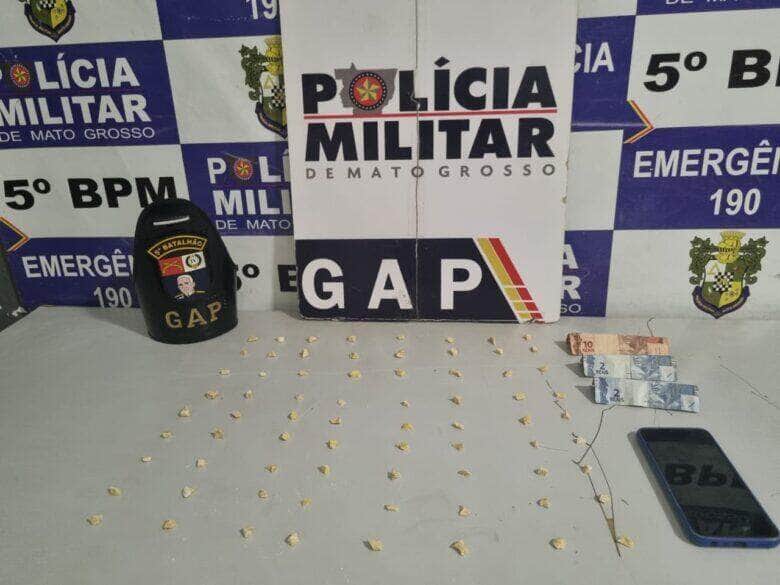 Policiais militares do 5º Batalhão prenderam em flagrante um homem de 31 anos por tráfico ilícito de drogas, na noite desta terça-feira (1º.08), em Rondonópolis. Com o suspeito a PM apreendeu 72 porções de pasta base de cocaína.