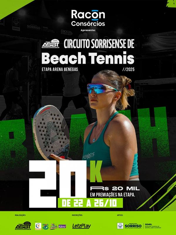 Os jogos ocorrem de quarta a sexta-feira, das 17h30 às 23h, e no sábado (25), das 7h às 23h. O evento é uma realização da Associação Sorriso de Beach Tennis (ASBT), com apoio da Prefeitura de Sorriso, por meio da Secretaria Municipal de Esporte, Lazer e Juventude.