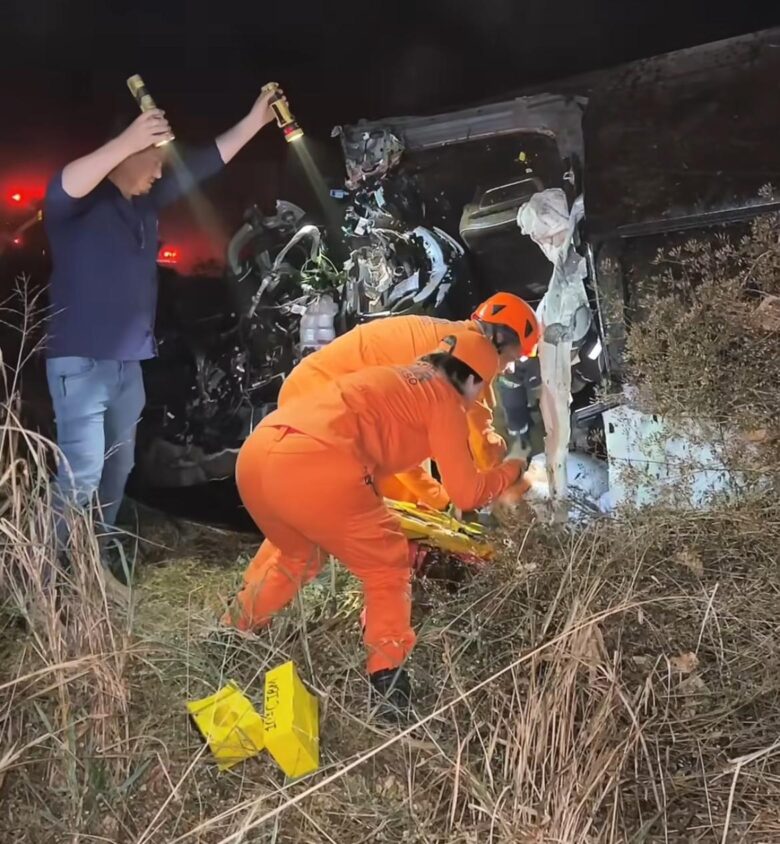 “Foi um abalroamento no poste seguido de capotamento. A vítima ficou presa no veículo e, com a queda dos fios, houve um incêndio. Fizemos primeiro o combate às chamas e, depois, o desencarceramento”, relatou o militar.