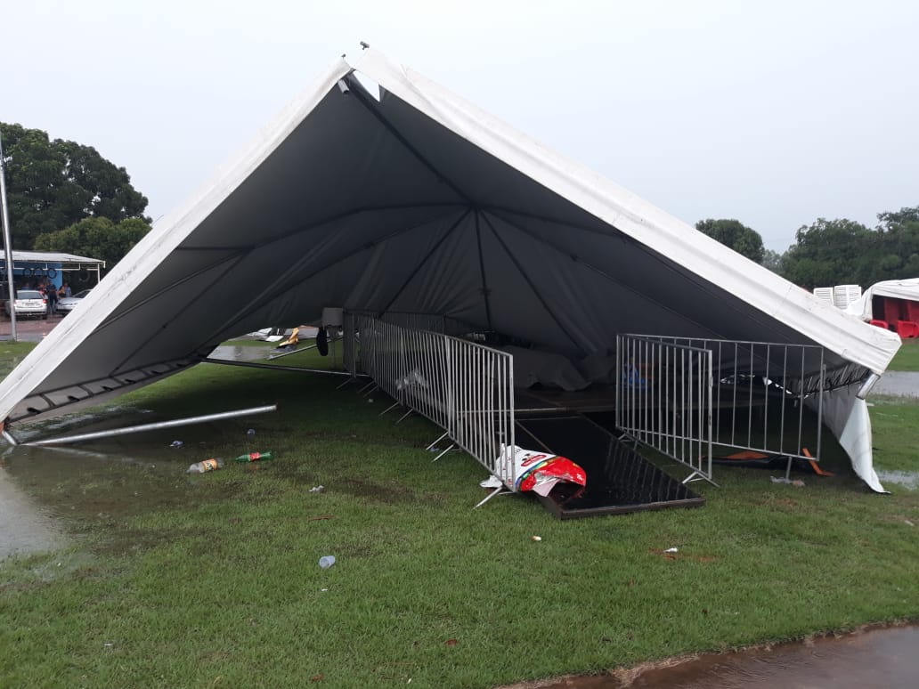 Um vendaval de grandes proporções mandou ao chão toda estrutura preparada para a realização do evento, como tendas e balcões, ficando apenas barras de ferro retorcidas. Até poste de iluminação pública terminou caindo. Felizmente, ninguém se feriu.