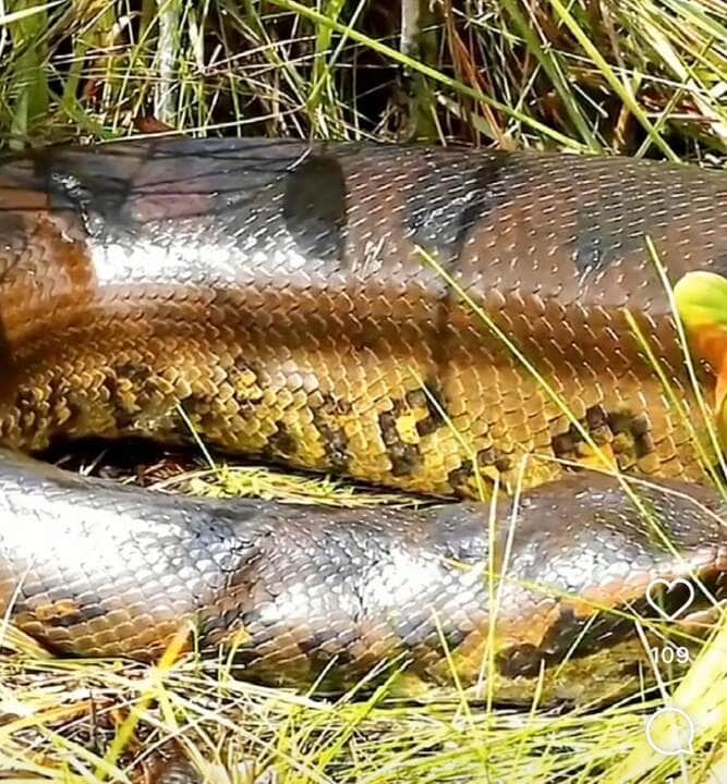 Colossal sucuri que surpreendeu motorista em estrada de Mato Grosso