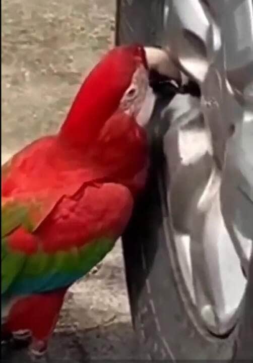 Arara viraliza ao esvaziar pneus de camionete
