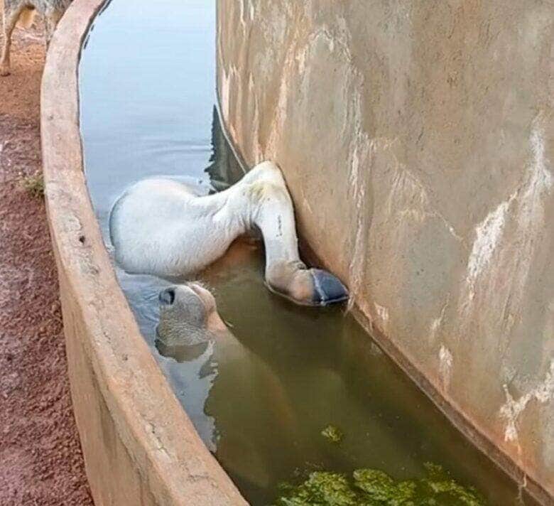 Dessa vez, o brincalhão bovino conseguiu cair dentro do bebedouro de água, proporcionando momentos de suspense e humor aos internautas.