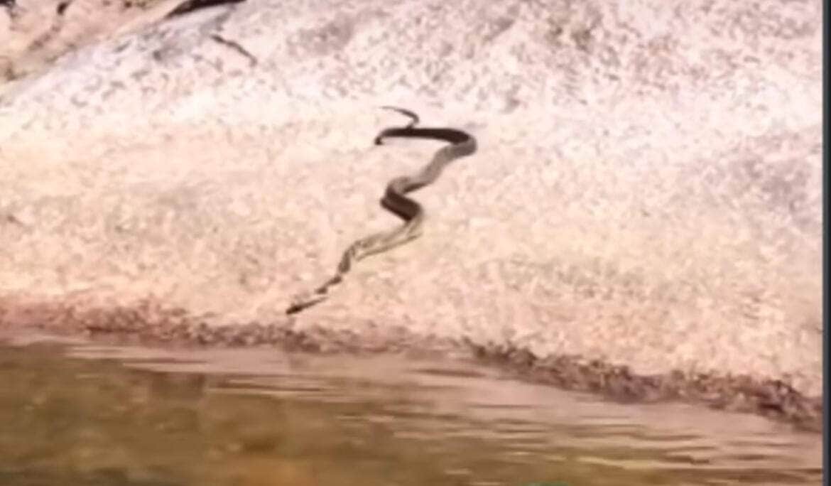 Caninana desafia correnteza em travessia impressionante: biólogo alerta sobre cobras em cachoeiras