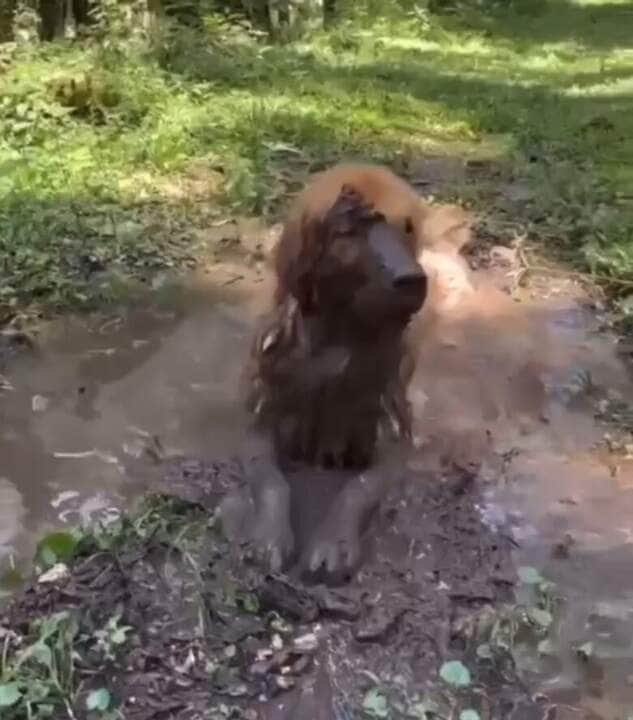 Cãozinho viraliza ao se refrescar em poça de lama. O vídeo ficou simplesmente incrível e tem chamado a atenção de dos internautas que gostam do Mundo Animal.