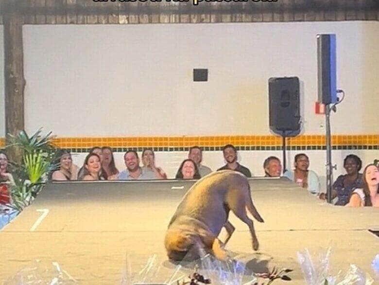 Caramelo não entrou discretamente no palco, não! Ele fez questão de deixar sua marca, exibindo poses de yoga que surpreenderam a todos, até os jurados! Suas habilidades inesperadas arrancaram gargalhadas e aplausos da plateia.