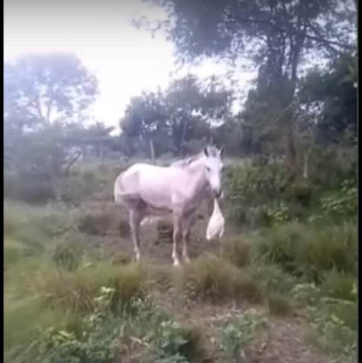 Nas imagens, o cavalo aparece no pasto com o pato preso as suas mandíbulas. O dono do cavo fica surpreso com o corrido, filma e as imagens viralizam nas redes sociais.