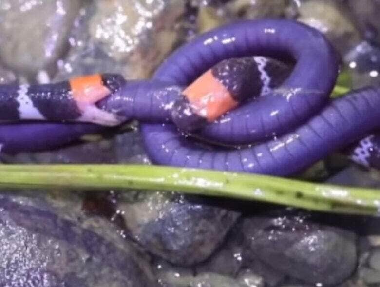Luta pela sobrevivência: Duas cobras corais disputam uma cobra cega