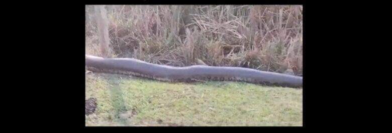 Uma enorme cobra sucuri foi avistada passeando em uma pastagem, nas proximidades de uma alagado.