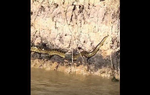 Vídeo de um incrível flagrante de uma cobra sucuri enrolada em uma capivara está circulando nas redes sociais.