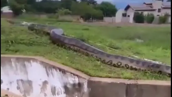 É possível ver pessoas nas proximidades. Elas parecem não ter medo da enorme serpente que desliza vagarosamente pela grama antes de acessar o lago. E a cobra também parece não se importar com a ‘plateia’.